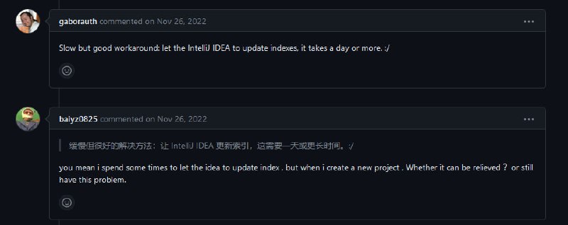 然后看到 YouTrack 上有人反馈,发了个 WSL 的 GitHub issue 链接,然后说是 WSL/Windows 的性能问题,和 IDEA 无关