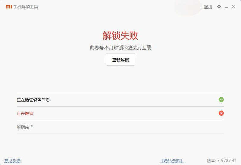 有趣的是,这个时候重启到 Fastboot 模式下,可以用小米解锁工具直接解锁。
